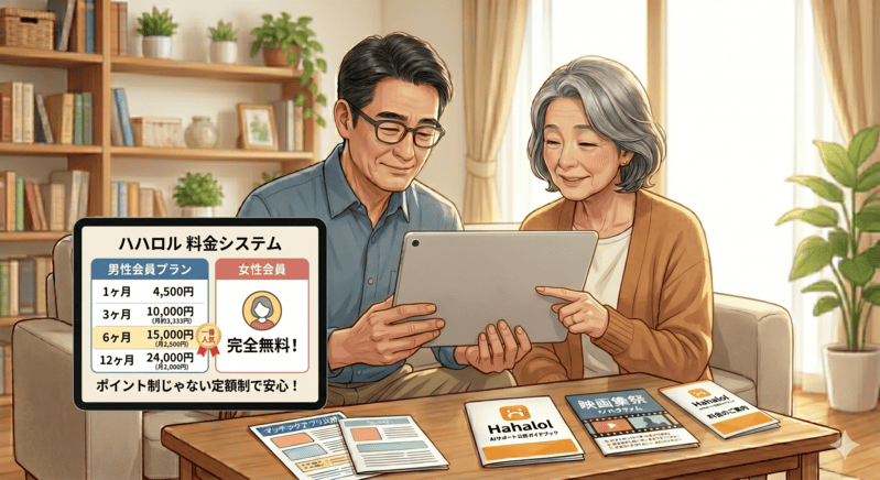 ハハロルは、女性は完全無料、男性は定額制というシンプルな料金体系を採用しています。月々の支払額が一定で、追加費用の心配をせずにじっくりとお相手探しに集中できるのが大きなメリットです。