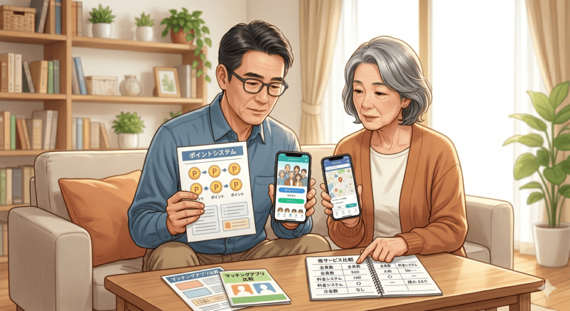 大きな違いは「目的」と「料金体系」です。従来の出会い系はポイント制が多く、1通ごとに課金されるため、遊び目的の利用も少なくありません。