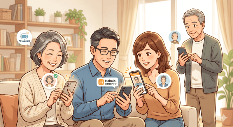 ハハロルは、50歳以上のミドル・シニア世代に特化したマッチングアプリです。若い世代が中心のアプリとは異なり、同年代だからこそ共感できる悩みや趣味を通じて、自然体で交流できる環境が整っています。