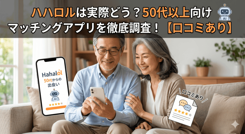本記事では、AIサポートや男性定額制といったハハロル独自の特徴を徹底解説します。実際に利用した方のリアルな口コミ、料金や安全性など、登録前に知っておきたい情報を網羅しました。人生の後半戦を共に歩む理想のパートナーを探したい方は、ぜひ参考にしてください。