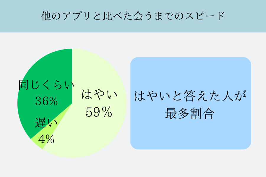 口コミにも「デートまでがスピーディー」という声が多く、利用者の多くがスピード感のある出会いを実現できているとわかりました。