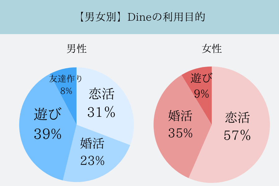 女性に関しては半数を大きく超えており、男性は半数に近い数字であることから、Dineはある程度出会えるマッチングアプリだと言えます。