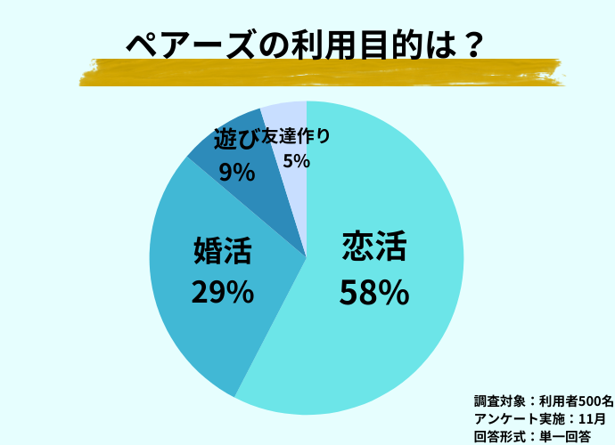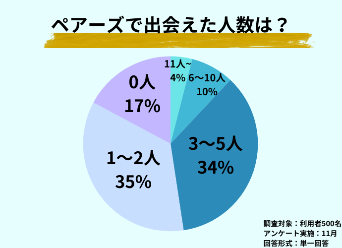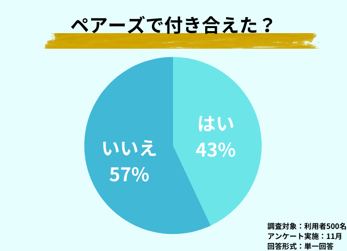 ここでは、ペアーズで交際にいたった人の割合を利用者500人に調査したところ、