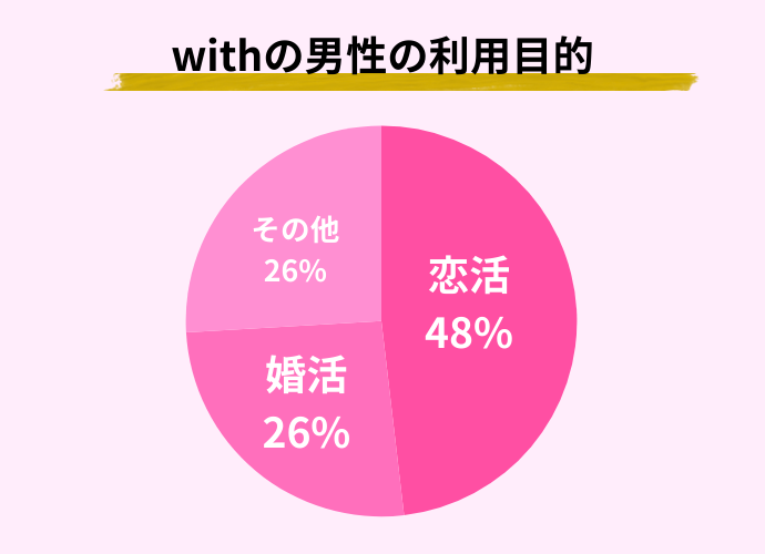 withの利用者の大半は20代~30代前半の人です。また利用目的の割合的には恋活が多いです。