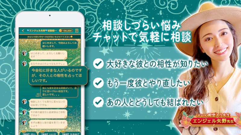 エンジェル矢野先生は、ウラーノの顔ともいえる圧倒的人気を誇る存在です。結婚や片思いに関する相談に強く、具体的な婚期や運命の相手の特徴を的中させることで有名な彼女。